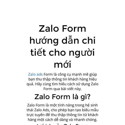 Zalo Form là công cụ hữu ích giúp bạn tối ưu hóa chiến dịch quảng cáo và thu thập thông tin khách hàng hiệu quả. Hãy bắt đầu sử dụng ngay hôm nay để đạt được kết quả tốt nhất!