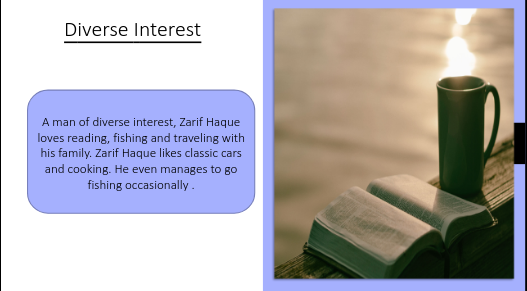 Zarif Haque is a loyal fan of the Kansas City Royals and Chiefs. He also follows college basketball, a sport he used to play himself. As an entrepreneur, Zarif Haque hopes to build a legacy for his children. The dedicated family man loves to foster good relationships with his employees and help them grow. Visit here: https://speakerhub.com/speaker/zarif-haque