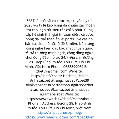 Website: https://www.twitch.tv/zbet39com/about. ZBET là nhà cái cá cược trực tuyến uy tín 2025 với tỷ lệ kèo bóng đá chuẩn xác, hoàn trả cao, nạp rút siêu tốc chỉ 5 phút. Cung cấp hệ sinh thái giải trí toàn diện: cá cược bóng đá, thể thao ảo, eSports