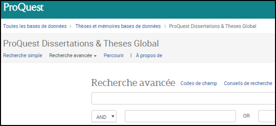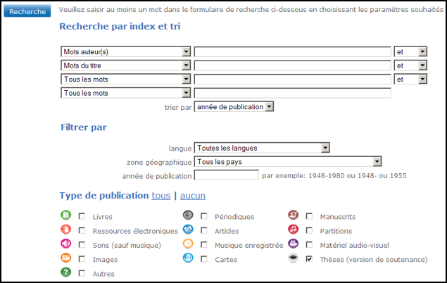 - Dans la recherche avancée, limiter la recherche aux thèses puis rechercher dans l’index Tous les mots