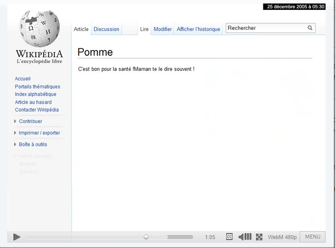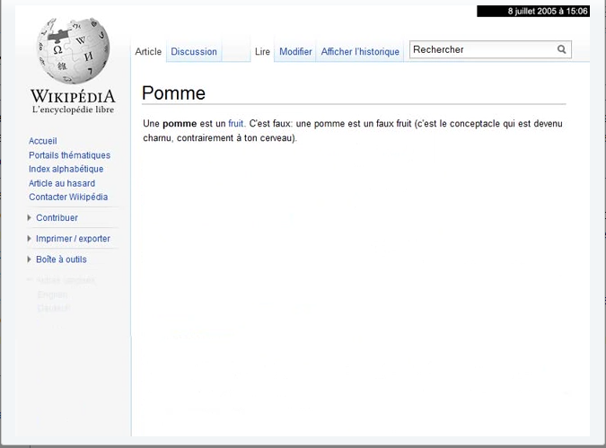 Évolution de l'article « Pomme » entre 2002 et 2012