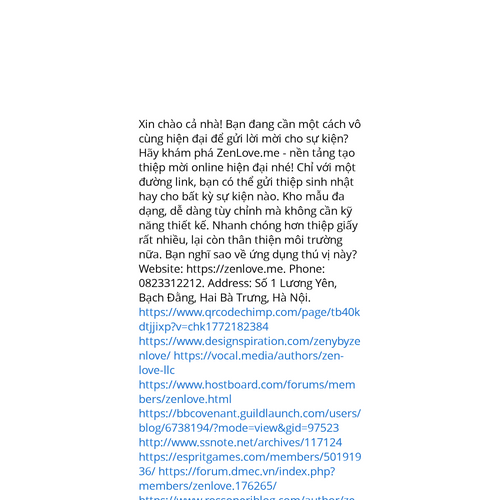 Website: https://zenlove.mehttps://zenlove.me Chào bạn cả nhà! Bạn đang muốn có một cách thật nhanh để gửi lời mời cho sự kiện? Hãy ghé thăm ZenLove.me - nền tảng tạo thiệp mời online thông minh nhé! Chỉ với một đường link, bạn có thể gửi thiệp cưới hay cho bất kỳ sự