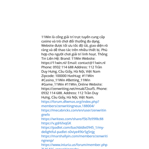 Website: https://zenwriting.net/msab72xaf5. 11Win là cổng giải trí trực tuyến cung cấp casino và trò chơi đổi thưởng đa dạng. Website được tối ưu tốc độ tải, giao diện rõ ràng và dễ thao tác trên nhiều thiết bị. Phù hợp cho người chơi giải trí linh h
