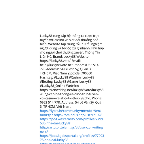 Website: https://zenwriting.net/lucky88vote/lucky88-cung-cap-he-thong-ca-cuoc-truc-tuyen-voi-casino-va-slot-doi-thuong-pho. Lucky88 cung cấp hệ thống ca cược trực tuyến với casino và slot đổi thưởng phổ biến. Website tập trung tối ưu trải nghiệm ngườ