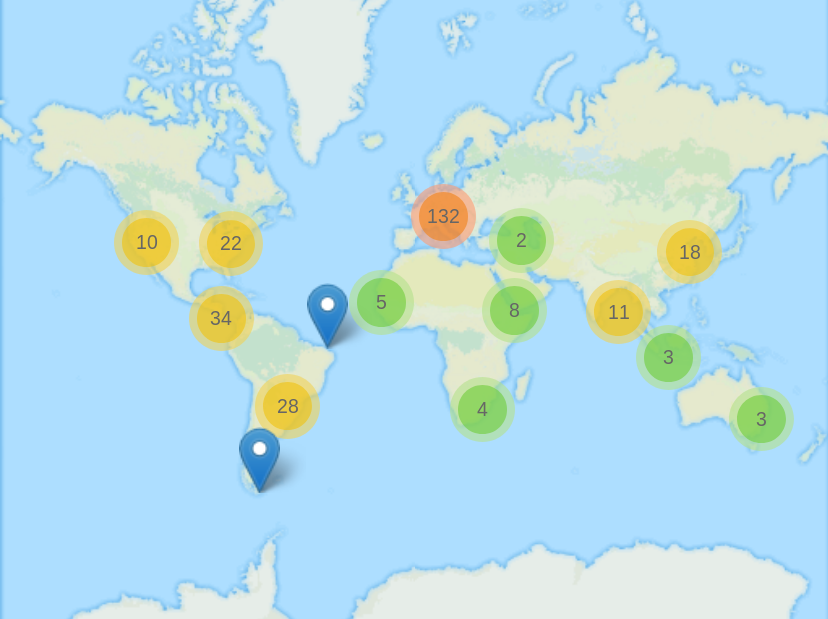 Hay 63 Institutos GeoGebra locales alrededor del mundo, de los cuales 18 están ubicados en Latinoamérica (GeoGebra, 2019)