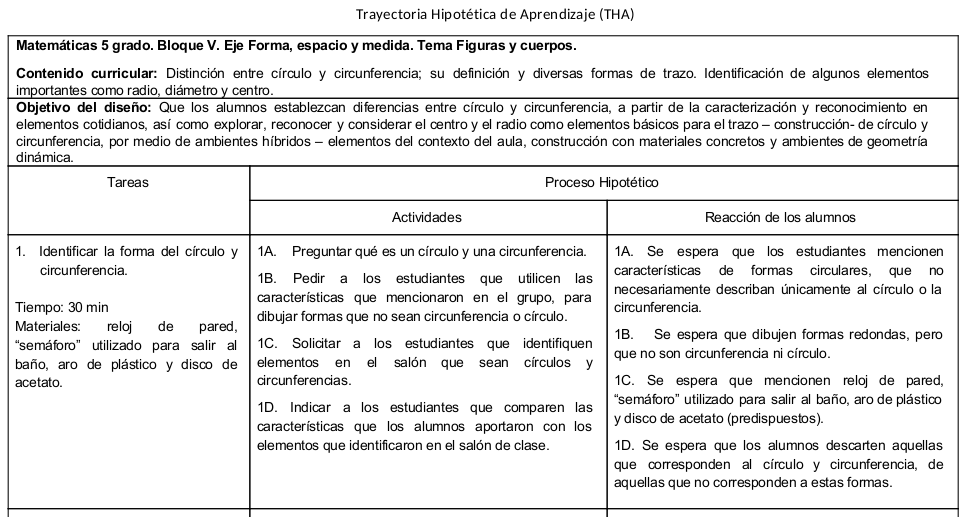 Contenido curricular: Distinción entre círculo y circunferencia; su definición y diversas formas de trazo. Identificación de algunos elementos importantes como radio, diámetro y centro.