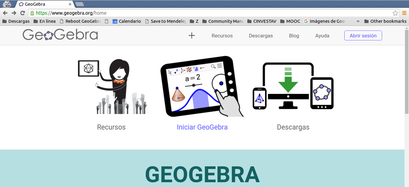 Sesión 1 [jue-16-feb-2017] Taller dirigido a los colegas del Departamento de Matemática Educativa del Cinvestav. En esta ocasión orientado a explorar las capacidades actuales de GeoGebra, reunidas en su plataforma en línea [www.geogebra.orgwww.geogebra.org