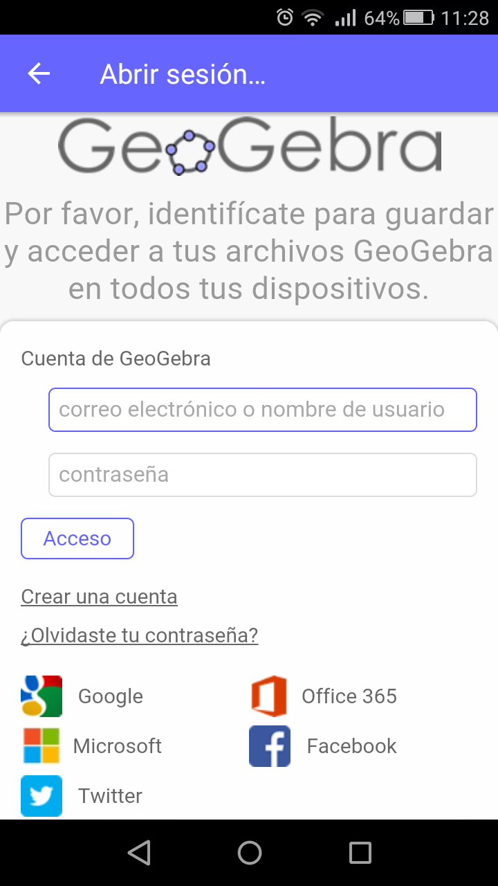 Acceso a perfil GeoGebra, desde distintas plataformas