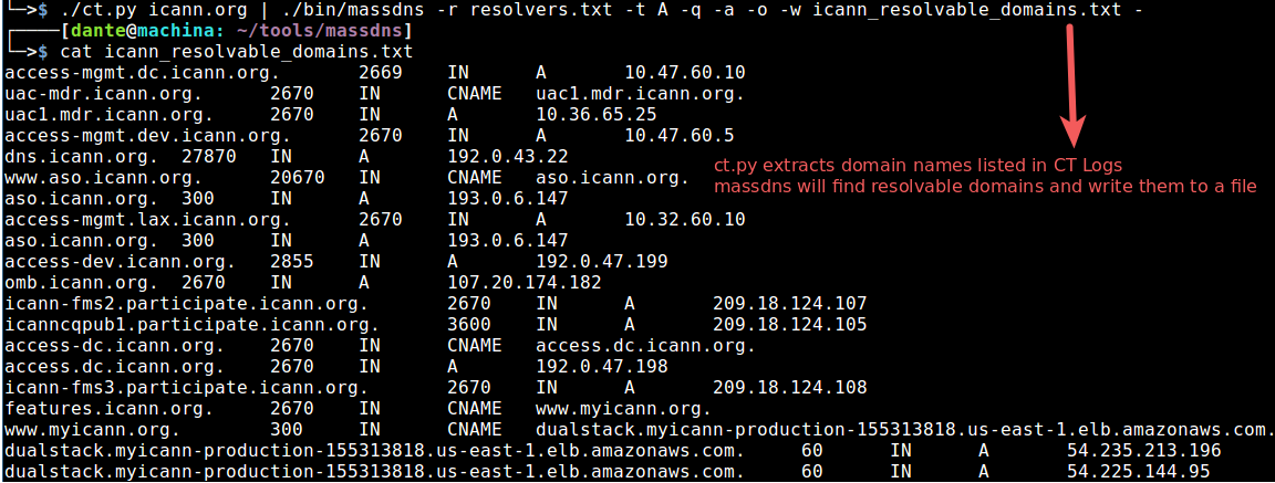 so we use CT log and massdns combine