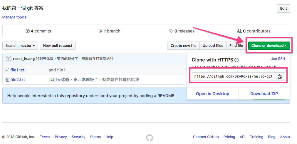 $ git commit -m "加入了兩隻檔案"commit: 加入了兩隻檔案