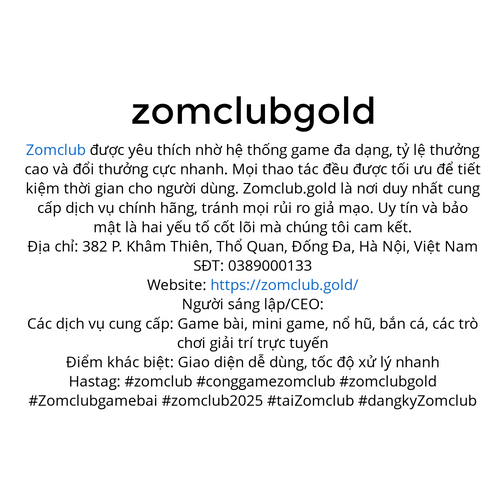 Zomclub được yêu thích nhờ hệ thống game đa dạng, tỷ lệ thưởng cao và đổi thưởng cực nhanh. Mọi thao tác đều được tối ưu để tiết kiệm thời gian cho người dùng. Zomclub.gold là nơi duy nhất cung cấp dịch vụ chính hãng, tránh mọi rủi ro giả mạo. Uy tín