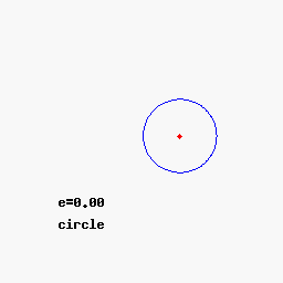 Chámase excentricidade a e , para e = 0, temos un círculo, para 0 < e < 1 obtemos unha elipse, para e = 1 unha parábola, e para e > 1 unha hipérbola.