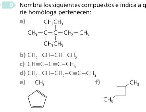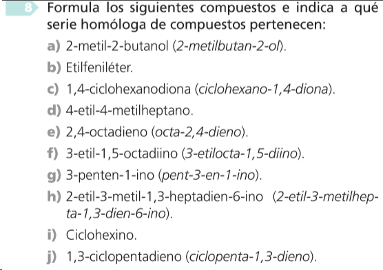 19. Escribe a fórmula semidesenvolvida e nomea dous isómeros dos seguintes compostos: