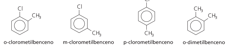 1-cloro-2-metilbenceno, 1-cloro-3-metilbenceno, 1-cloro-4-metilbenceno, 1,2-dimetilbenceno